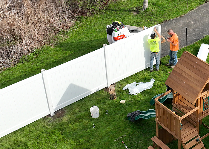 A modern alternative to wood, vinyl fences are durable, resistant to weathering, and nearly maintenance-free.